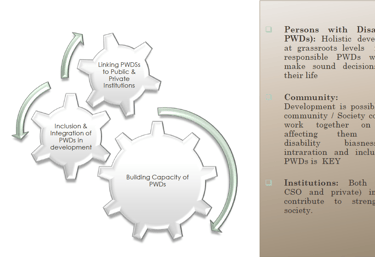 We work to enhance participatory development which utilizes both abled and disabled capabilities and provides equal opportunities for all people regardless of race, ethnicity, gender and religion